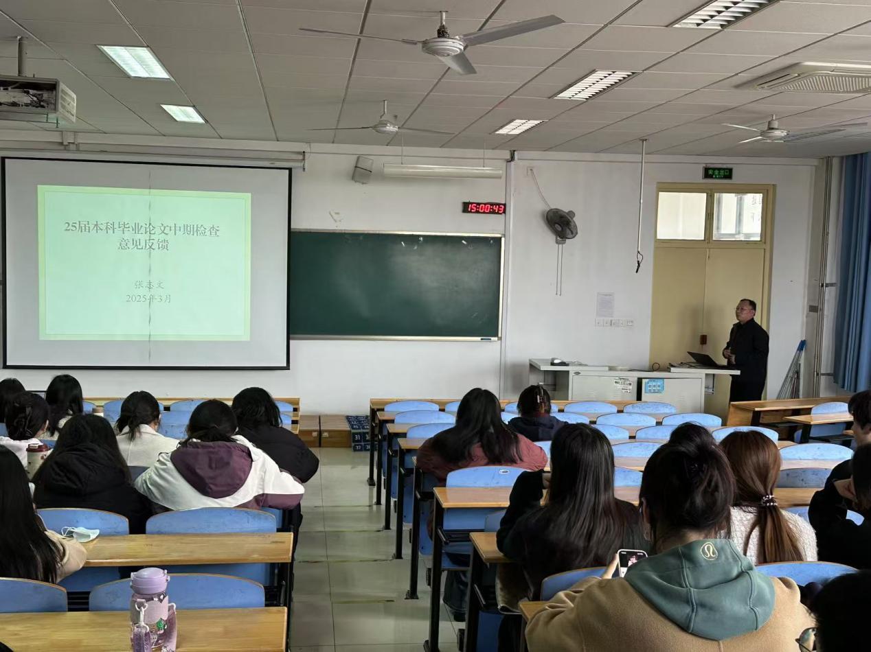 此次会议对毕业论文中期检查中发现的问题进行了及时总结与反馈,强化了学生对论文各部分写作方法的认识,加强了学术道德与诚信教育,有利于同学们有针对性地对毕业论文进行修改完善,提高毕业论文写作与人才培养的质量。