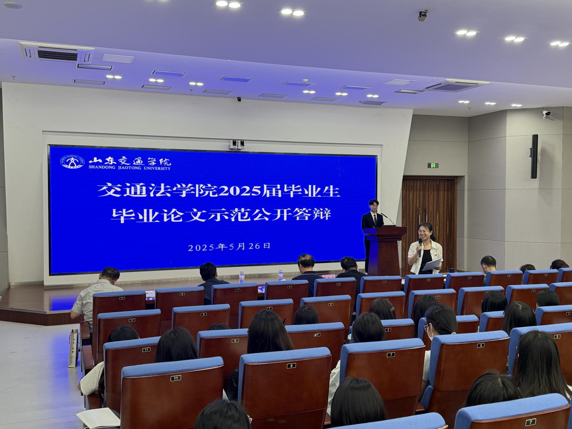5月26日,学院在机电楼B107进行了示范公开答辩。交通法学院院长范冠峰,校级督导专家尹金生,全体指导教师、2025届全体毕业生参加。答辩过程中,4位学生代表通过演示PPT对论文框架、主要观点等进行简要陈述,答辩小组评委分别就论文相关内容进行了提问,并就存在的问题提出修改建议。答辩现场秩序井然、学术氛围浓厚。