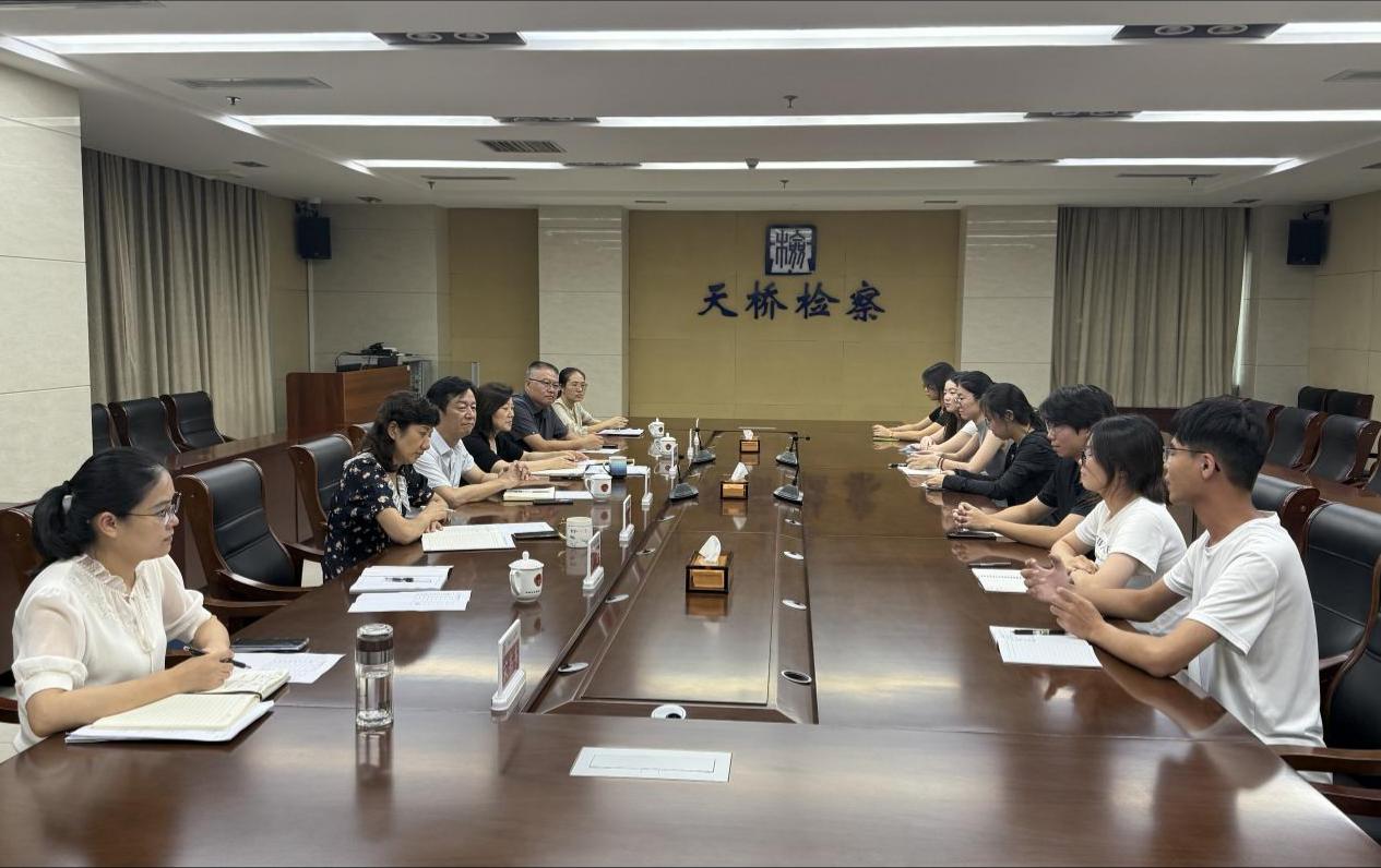在天桥区人民检察院,王洪鹏对关心支持学院发展的天桥区人民检察院表示诚挚感谢,表示双方已经正式签订产学研合作协议,希望以此为契机进一步深化合作。天桥区人民检察院党组副书记、副检察长王丽燕对交通法学院一行的来访表示热烈欢迎,对实习学生的工作表示肯定,同时希望实习学生不仅能完成基础工作,更能主动思考,强化法律逻辑思维和能力培养。